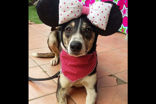 Eu sou a Panda, uma cachorrinha de 1 ano, porte G e castrada. Sou brincalhona e também sei fingir ser a Minnie. Me adota?