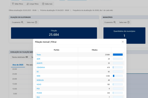 Em seguida, numa terceira linha, há duas siglas médias. Uma é o PRD, que ainda mantém o espólio do falecido PTB, com 1.746 filiados, outra é o União Brasil, vitaminado por lideranças de várias siglas, ex-DEM e PSL, e que conta com 1.513 alistados.