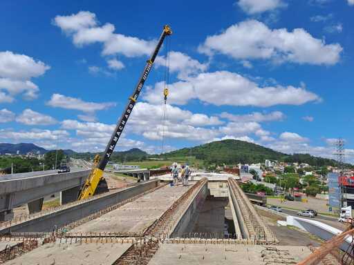 Desde que as vigas do segundo viaduto do Trevo da Uglione tinham sido içadas, no final de fevereiro, a obra estava parada. Mas nesta quarta-feira (30), 10 meses depois, operários das construtoras do lote 1 da duplicação da Travessia Urbana voltaram a trabalhar nesse segundo viaduto, que fará o trânsito no sentido Urlândia-Duque. Com um guindaste, começaram a ser instaladas as lajes pré-moldadas, sobre as quais serão construídas e asfaltadas as pistas do viaduto. O Departamento Nacional de Infraestrutura de Transportes (Dnit) não dá uma data para a conclusão desse segundo viaduto, mas deve ser nos primeiros meses de 2024, segundo o Diário apurou. A promessa do órgão é que, depois, até o final de junho do ano que vem, 100% da duplicação esteja concluída.