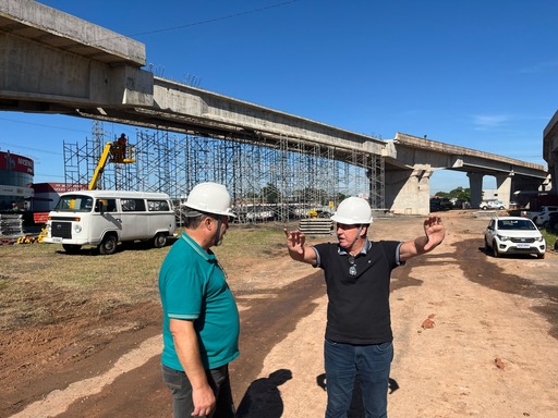 O presidente da Comissão Especial da Travessia Urbana, vereador Valdir Oliveira (PT), esteve na sexta fazendo uma vistoria nas obras de duplicação. O engenheiro do Dnit João Carlos Tonetto mostrou como estão os trabalhos no trevo da Uglione e nas passagens inferiores (túneis abaixo da rodovia) da Urlândia e da Vasco da Cunha, além da nova passarela entre as vilas Caramelo e São João.