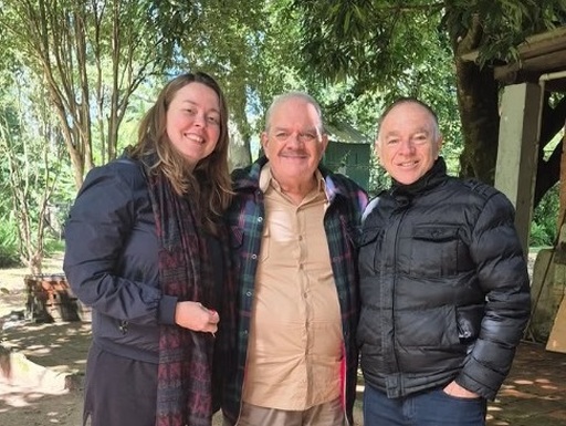 Zé Victor Castiel (centro) ao lado dos produtores Paola Mallmann e Beto Rodrigues, que produziu O Tempo e O Vento.