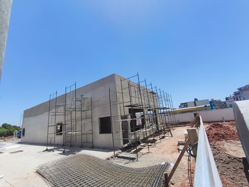 A construção começou em setembro, quando foi demolido o prédio antigo, que pertencia no passado à Expresso Mercúrio. Como é usada a tecnologia steel frame para a construção, com estrutura metálica e chapas cimentícias, a obra é mais ágil. As paredes já estão prontas (foto acima).