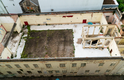 Prédio na Rua do Acampamento, há uma quadra do Calçadão, está interditado desde queda do telhado, em fevereiro de 2018