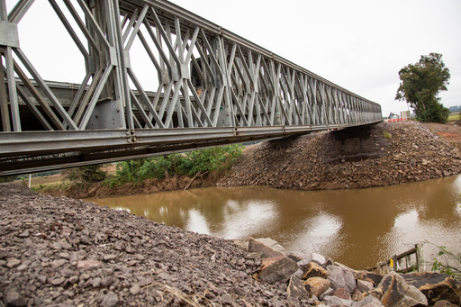No dia 2 de abril, a Secretaria Estadual da Reconstrução Gaúcha aprovou o projeto da nova ponte sobre o Arroio Grande, na RSC-287, para o local onde a estrutura antiga foi derrubada pela enchente em 30 de abril de 2024. Quatro meses depois, nada ainda de obra. E pior: até agora, não foi aprovado o projeto do acesso à ponte, pois será preciso construir uma duplicação lateral de 800 metros para desviar o tráfego para a nova estrutura sobre o Arroio Grande. E falta aprovar o aditivo, com valores extras a serem pagos à Rota, que fará a obra.