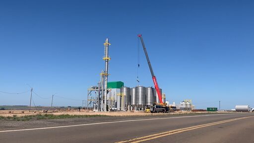 Já foram instalados no local a torre de destilação e os tanques de fermentação, além do prédio onde será feita a moagem dos grãos. Mas como apenas um quinto da estrutura foi montada, ainda faltará instalar os tanques de armazenagem e demais tanques para os processos de fabricação do etanol.