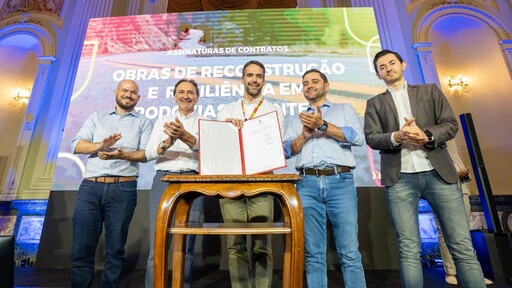 O governador Eduardo Leite assinou, nesta segunda-feira (20), contratos de 15 obras e três pontes no Estado, com investimento total de R$ 1,2 bilhão para reconstrução dos estragos da enchente. A verba é federal, de recursos que a União deixou de cobrar da dívida do Rio Grande do Sul.