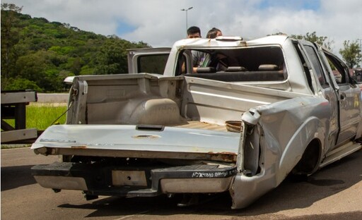 Caminhão de coleta de resíduos tomba na BR-158, em Santa Maria