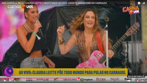 Depois de participar do programa Encontro, com Patrícia Poeta, na sexta (7) pela manhã, e do Melhor da Noite, na Band, à noite, a cantora santa-mariense Raquel Tombesi, vocalista da banda baiana Cheiro de Amor, estreou no palco do estádio Allianz Parque, do Palmeiras, em São Paulo, ao lado de uma das musas do Carnaval da Bahia. Neste sábado (8) à tarde, Raquel foi convidada a subir no palco e cantar ao lado de Claudia Leitte, durante show do festival CarnaUOL, para milhares de pessoas e com transmissão pelo YouTube do UOL e plataformas de TV. Veja abaixo o vídeo em que Claudia apresenta Raquel e, mais abaixo, um trecho da música.
