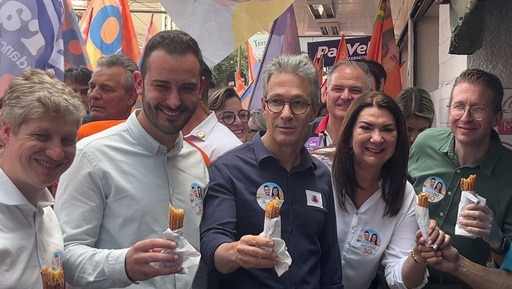 Principal nome do Novo no país, o governador de Minas Gerais, Romeu Zema, aterrissou em Santa Maria, segunda-feira (30), para fazer campanha para o candidato a prefeito do seu partido, o ex-deputado Giuseppe Riesgo. Acompanhado do deputado federal Marcel van Hattem (Novo) e do secretário estadual de Desenvolvimento Social, Beto Fantinel (MDB), Zema, Riesgo e sua vice, Magali Marques da Rocha (MDB), caminharam pelo Calçadão Salvador Isaia.