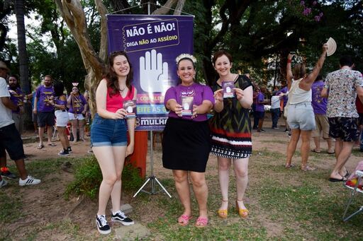 Mais uma vez, a Procuradoria Especial da Mulher da Câmara de Vereadores de Santa Maria coloca o seu bloco na rua na campanha contra o assédio e a importunação sexual durante o Carnaval 2024.