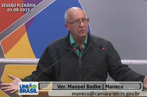Na reta final do seu sexto e último mandato no Legislativo santa-mariense, o vereador Manoel Badke (União Brasil), Maneco, fez uma manifestação contundente na primeira sessão após o recesso de inverno, na última terça-feira, contra “o oportunismo” na política. O pronunciamento foi motivado pelo fato de a direção estadual do União Brasil (UB) decidir romper com o governo Jorge Pozzobom (PSDB) para alinhar uma aliança com o PT e apoiar o deputado Valdeci Oliveira a prefeito. Pela decisão, os políticos – entre eles o vice-prefeito Rodrigo Decimo, Jair Binotto, atual presidente da sigla, e o secretário Rodrigo Menna Barreto, além do próprio vereador – deveriam deixar o UB em caso de continuarem na prefeitura. O grupo decidiu permanecer no governo e, ao mesmo tempo, no partido, mas o futuro deve ser decidido nos próximos dias.