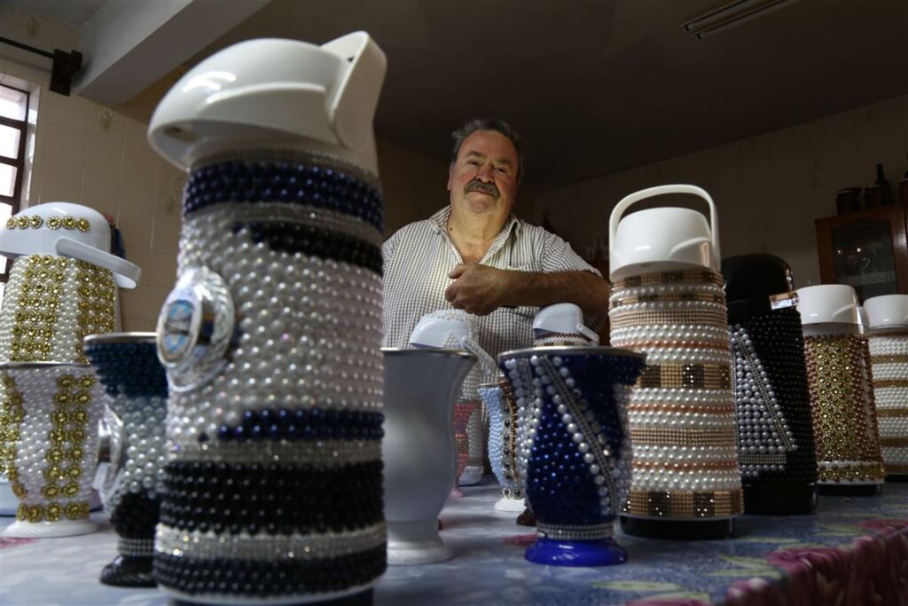Há duas décadas, o artesão Augusto Luiz Antunes, 65 anos, encontrou no chimarrão uma oportunidade de gerar recursos para a família. Cuias de couro, inox, PVC e pérola, produzidas artesanalmente, tornaram-se a única fonte de renda do santa-mariense que, além de atender dezenas de clientes, expõe o material no Brique da Vila Belga.