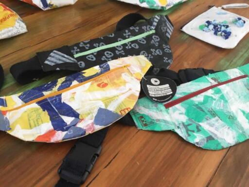 Sacolas retornáveis, pochetes, minicarteiras, chaveiros e diversos enfeites são feitos a partir de objetos de plástico que seriam descartados na natureza. A ideia é reunir empreendimento e consciência ecológica