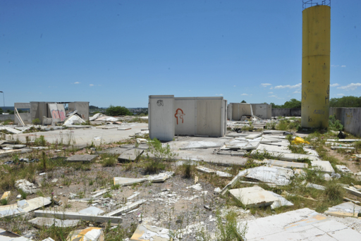 Situação da obra - A construção da creche iniciou e algumas paredes foram erguidas, além do chão concretado. Os materiais que ainda restam estão jogados pelo terreno em péssimas condições e alguns estão até queimados. Tanto o que foi construído, exceto a base de concreto, quanto os materiais empilhados não poderão ser aproveitados, já que foi alterado o método construtivo