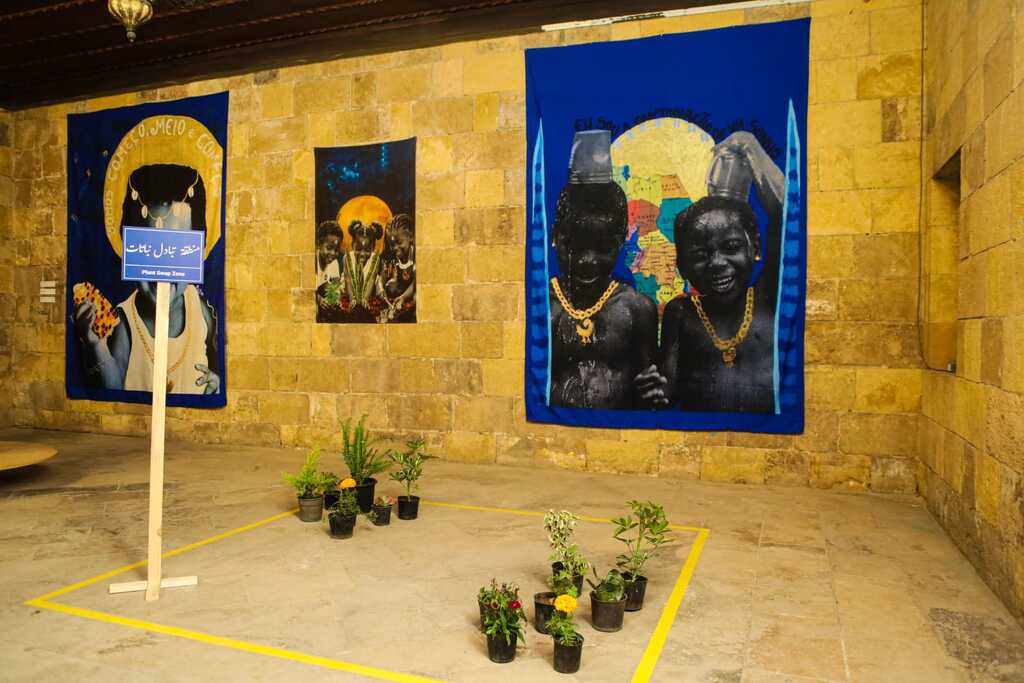 Na exposição, Rusha apresenta três obras em formato de bandeira. As peças têm como ponto central crianças negras como força geradora de esperança.