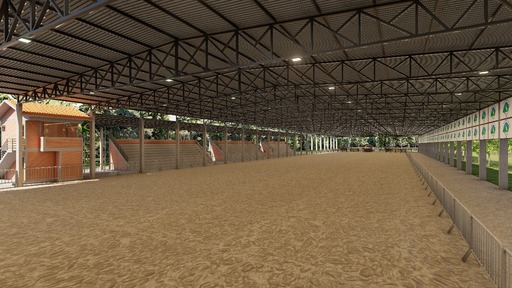 Área central terá 180 metros de comprimento por 35 metros de largura, com cobertura de sete metros de altura. Serão três arquibancadas cobertas, somando uma área de 72 metros de comprimento por 15 metros de largura.