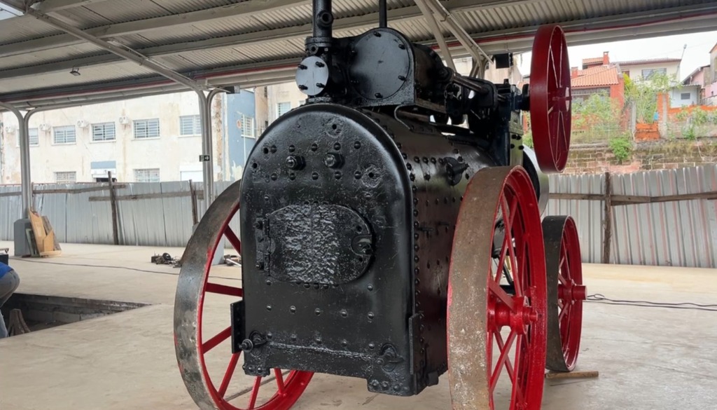 A quinta e última peça é o locomóvel, utilizado como gerador de energia a base de vapor.