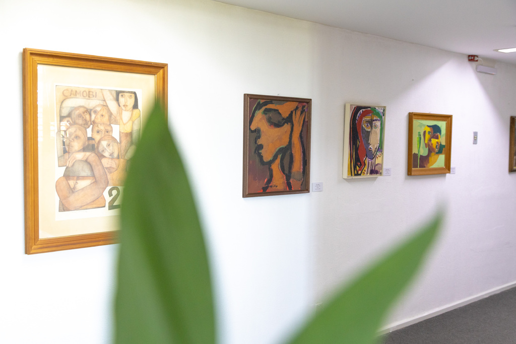 As peças incluem pinturas, gravuras em metal, desenhos e técnicas mistas, todas pertencentes ao acervo artístico da Universidade.