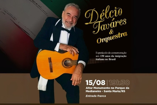Na próxima sexta-feira (15), feriado da Nossa Senhora Medianeira como Rainha do Povo Gaúcho, Santa Maria será palco de um espetáculo especial que une fé, música e tradição. O cantor gaúcho Délcio Taváres se apresenta ao lado de uma orquestra formada por músicos locais em um concerto gratuito no altar monumento da Basílica da Medianeira. A apresentação inicia às 19h30min e promete emocionar o público. A indicação é levar cadeira para prestigiar o evento.