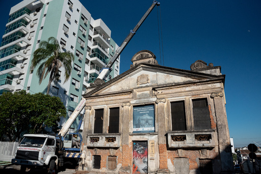 Por um longo tempo em ruínas, o casarão de estilo arquitetônico eclético que já faz parte do cenário de Santa Maria, na Rua Floriano Peixoto, esquina com a Ernesto Becker, agora começa a ganhar uma cara nova. Erguido em 1916, o prédio pertence à TV OVO desde 2016 e tem passado por obras para se tornar o Sobrado Centro Cultural. Na manhã da sexta-feira (9), as ruas ficaram parcialmente trancadas para o içamento da estrutura metálica que suportará a nova cobertura do casarão centenário.