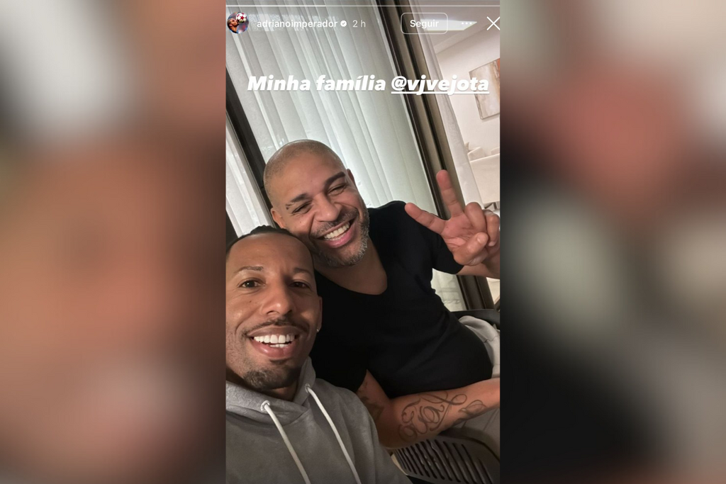 O meia-atacante do Inter-SM, Vitor Júnior, voltou a movimentar as redes sociais ao registrar um encontro com o ex-atacante Adriano Imperador. O jogador presenteou o amigo com camisas do clube santa-mariense, que também divulgou fotos de Adriano com o manto alvirrubro em suas redes.