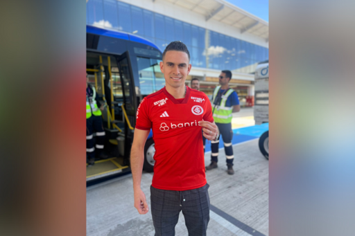 Perfil oficial do Inter no Twitter publicou uma foto do atacante no seu desembarque em Porto Alegre.
