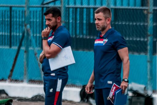 Leonardo Porto, à esquerda, é o treinador do sub-20 do Fortaleza, e Otávio Baggiotto Bettega, à direita, é o auxiliar técnico
