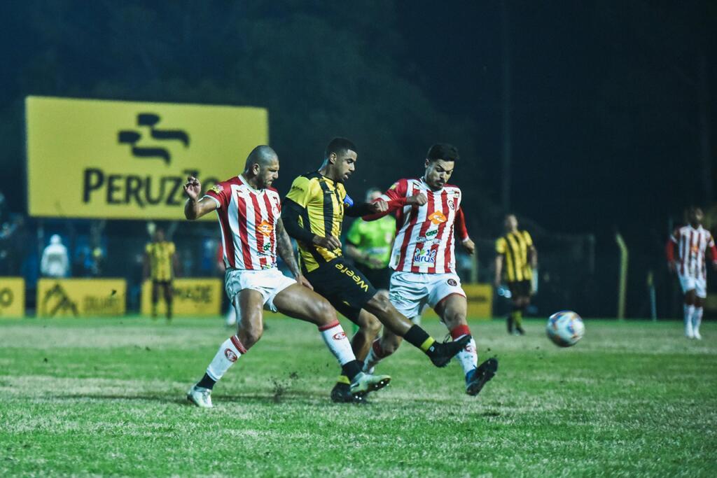 Resumo: Mesmo controlando as ações na primeira etapa, o Inter-SM saiu atrás no marcador após falta cobrada por Maurício que entrou direto. O empate veio aos 30 minutos do segundo tempo, quando Júlio Simas aproveitou sobra dentro da área e finalizou forte. Aos 40 minutos, Laion quase virou o jogo em cobrança de falta que acertou o travessão, mas o empate permaneceu até o final.