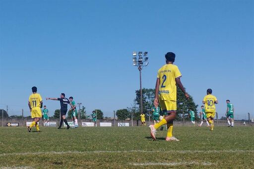 PRS (de amarelo) bateu o Panambi (de verde) no João Marimon Júnior, por 2 a 0, pela última rodada da fase classificatória. Adversário das quartas será o Ivoti
