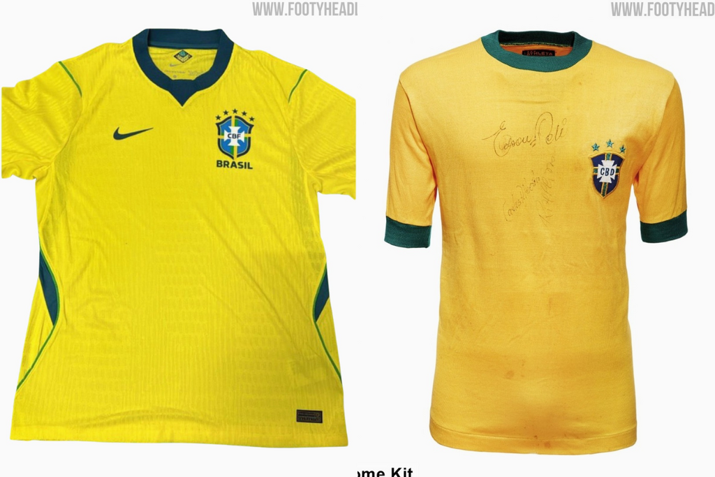 A camisa vazada mantém a identidade tradicional da Seleção, com predominância do amarelo e detalhes em verde. A gola segue o padrão verde, mas em um tom mais azulado, mesma tonalidade aplicada nas laterais do uniforme. Toda a peça apresenta textura gráfica ao longo do corpo. O site aponta que a inspiração para o modelo é a camisa utilizada na Copa de 1970, no México, ano em que o Brasil conquistou o tricampeonato.