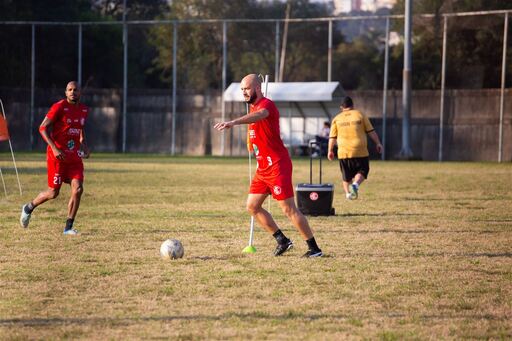 Equipe do centroavante Michel, com a bola, realizou treinamento no campo do Sesi nesta quinta-feira (26)