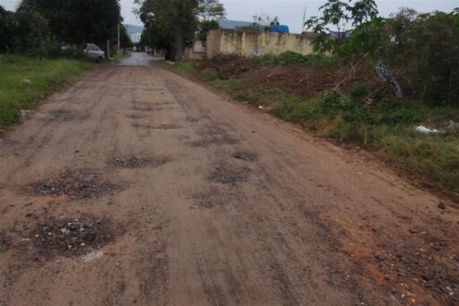 Rua Josué Guimarães é de chão batido e está cheia de buracos