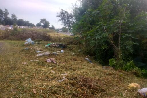 No entorno da sanga, há muito lixo atirado. Geladeira, sacolas plásticas, restos de televisores, galhos e lixo doméstico fazem parte do cenário do local.