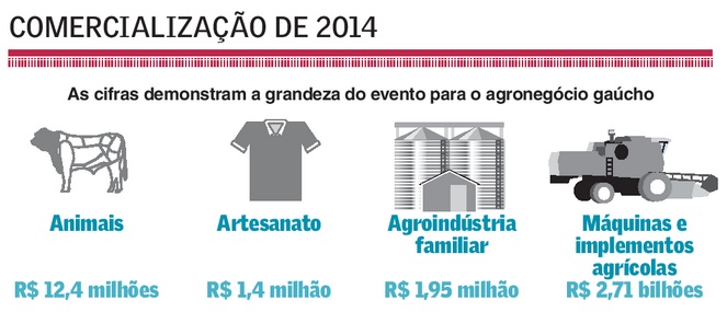 A Expointer dá a largada à temporada de feiras agropecuárias no Estado e serve de termômetro para o setor. Esse ano, especialistas preveem uma comercialização um pouco menor, sobretudo em implementos, já que as linhas de créditos para o setor endureceram as exigências bancárias, além da alta de juros.