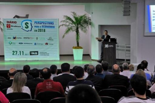 A reação do cenário econômico em 2018, influenciada por fatores como eleições e possibilidade da Reforma da Previdência, tem sido tema contante entre especialistas da área. A população e, em especial, o empresariado, estão ansiosos para saber se a economia vai mesmo reagir no ano que vem, em que setores e quanto. Justamente para tirar essas dúvidas, o economista-chefe e diretor de pesquisas e estudos econômicos do banco Bradesco, Fernando Honorato Barbosa, esteve em Santa Maria para ministrar a palestra "Perspectivas para a economia em 2018", realizada na Fapas na última segunda. Com mais de 15 anos de atuação no banco, Barbosa trouxe ao público dados e expectativas para o ano que vem. Segundo ele, o banco projeta crescimento do PIB do país de 2,8% em 2018, mas esse índice poderá ser maior.