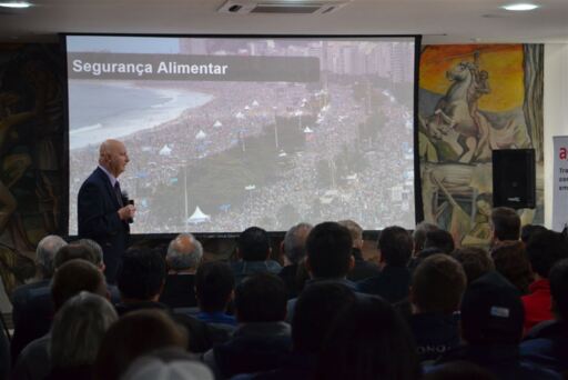 O presidente da John Deere no Brasil, Paulo Herrmann, fez uma excelente palestra ontem na UFSM, em que defendeu que o Brasil deve investir na sua vocação de alimentar o mundo. Ele reforçou a mesma percepção que tem o ex-ministro da Agricultura Roberto Rodrigues, que esteve na universidade em 2018 e falou que o país precisa se focar nesse objetivo de ser o líder mundial para garantir segurança alimentar do planeta. Para lembrar que já temos essa vocação, Herrmann citou ontem que o Brasil já está no 1º e 2º lugar em produção e também exportação dos principais alimentos, como soja, frango, carne bovina, açúcar, café e laranja e que, em breve, deve assumir a liderança em milho. Ele apresentou números do crescimento expressivo da população mundial até 2050, que reforçam a necessidade de ampliar a produção de alimentos para alimentar tantas bocas e que isso pode ser feito não com aumento de área plantada, mas com melhoria das tecnologias para produzir muito mais na mesma área. Em 2050, 5,2 bilhões de pessoas (54% da população), estarão na Ásia, e a China já será a maior potência mundial, superando os Estados Unidos. E os chineses vão querer só alimentos, e não produtos industrializados, pois isso eles produzem lá de forma bem mais barata do que aqui no Brasil.