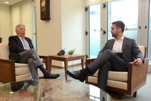 Governador (à direita) está em São Paulo, onde se reuniu com o ex-presidente Fernando Henrique Cardoso (á esq.), e dirigentes da GM