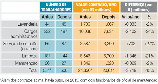 Veja abaixo o número de terceirizados e o valor dos contratos: