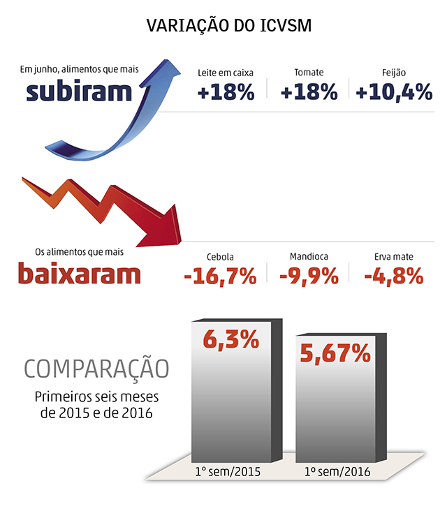 Conforme o ICVSM, o grupo alimentação foi o que mais pesou durante o último mês (veja ao lado). De acordo com o economista e coordenador do ICVSM, Mateus Frozza, essa queda quase não é percebida pelos consumidores, uma vez que os preços dos alimentos, um dos itens que mais pesa no bolso, continuam subindo mês a mês.