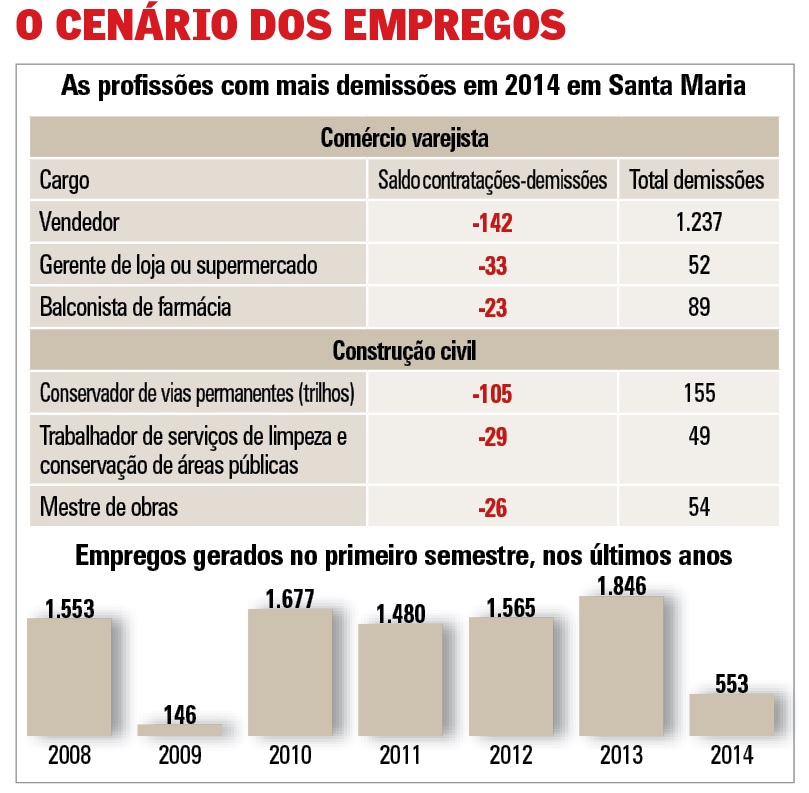 O comércio em Santa Maria está pessimista diante dos resultados de vendas este ano. Dados da Câmara de Dirigentes Lojistas (CDL) mostram decréscimo nas vendas em todos os setores do varejo, o que tem desestimulado lojistas a investirem, além de causar o corte de empregos. Diversos fatores são apontados como causas do fenômeno, como a parada do país na Copa e o endividamento do povo.