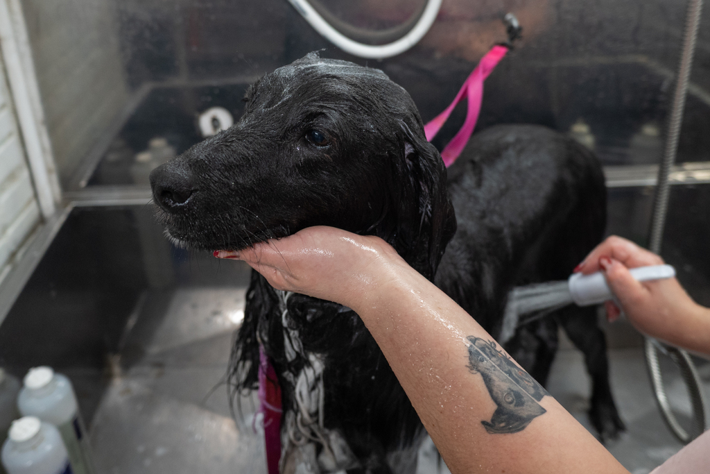 Entre os clientes fiéis e fixos está a social media e influenciadora digital Maria Izabel Garcia, 24 anos, tutora de Aurora, 7 anos, e de Preto, também com cerca de 7 anos. Ambos tomam banho na Athena a cada 15 dias. Protetora da causa animal, Maria Izabel diz que, além de buscar um local seguro, valoriza empreendimentos que apoiam a proteção de animais.