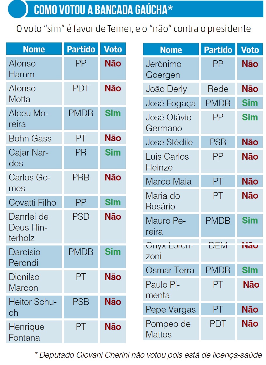 – Eu não votei no Temer, quem votou foi o PT. A cada dia surge uma coisa nova, mas eu não quero crise nenhuma. Mesmo sendo contra o PSDB no governo, defendo a estabilidade. Não sei o que vai acontecer com a economia, mas com essa decisão da Câmara, acho que o presidente toca até o final do seu mandato – avalia ele.