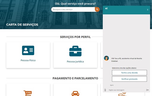 A Receita Estadual do Rio Grande do Sul criou a Rê, uma assistente virtual para esclarecer dúvidas e prestar orientações aos cidadãos e contribuintes. O chatbot está disponível no Portal de Atendimento. O ícone dessa nova ferramenta está localizado no canto inferior direito da tela e está identificado como Fale Conosco. A Rê pode responder a diversos questionamentos sobre a administração tributária gaúcha, além de verificar o status dos protocolos de atendimento abertos pelo usuário nos canais Fale Conosco e Plantão Fiscal Virtual, bastando informar o código do protocolo (no formato PFV-000000-A0A0A).