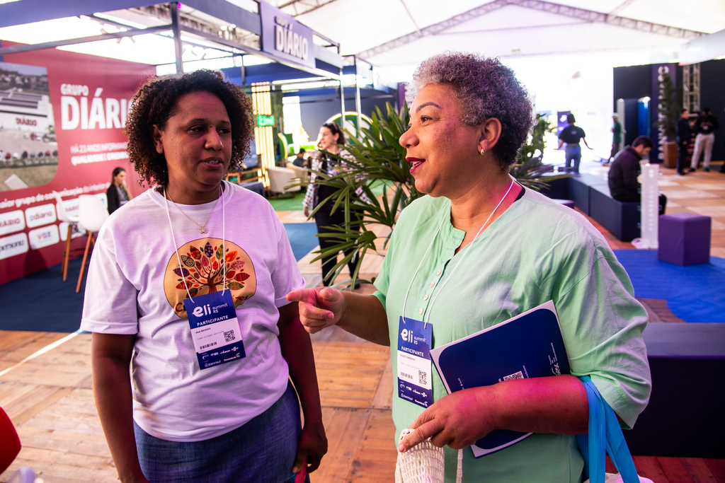 Em dois dias, cerca de 600 pessoas, vindas de várias partes do Estado, partilharam conhecimentos no Eli Summit. Entre elas, estavam as empreendedoras Ana Mendes, 43 anos, e Ivonete Barbosa, 54 anos, de Porto Alegre, que atuam com projetos sociais que impactam diretamente o maior bairro periférico da Capital gaúcha, a Restinga. A Associação Espaço Esperança, de saúde integral, da qual Ivonete é presidente, começou pequena, mas busca ampliar horizontes em eventos como a Semana da Inovação.