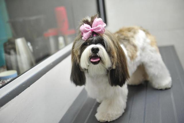 O aposentado Alexandre Fleig conta que a família adora ver a shitzu Charlotte com os pelos escovados e brilhantes. Semanalmente, a pet visita machado.