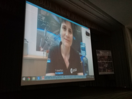 Samantha fez questão de participar do projeto tirando dúvidas das crianças sobre o trabalho no espaço