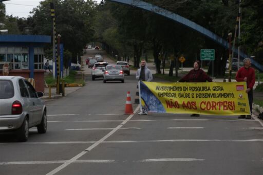 A movimentação começou por volta das 7h e reuniu representantes da Seção Sindical de Técnicos de Nível Superior(Atens), Associação do Servidores (Assufsm), Seção Sindical dos Docentes (Sudufsm) e do Diretório Central dos Estudantes da UFSM (DCE). O trânsito não teve interrupções no local. Por volta das 8h30min, um efetivo da Brigada Militar coordenava o trânsito na rótula de acesso à UFSM.