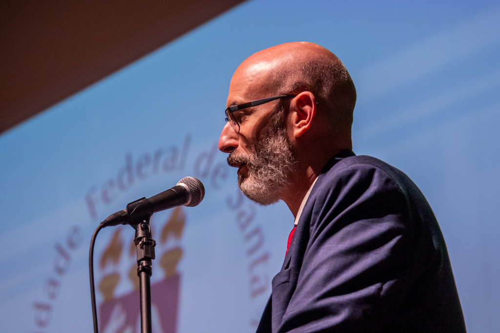 Também pontuou que sua gestão atravessou um período considerado por ele como um dos mais complexos da história recente da universidade. Entre os episódios citados, estavam o início de um governo federal negacionista, a pandemia da Covid-19, restrições orçamentárias severas, eventos climáticos extremos, assassinatos de professores, acidentes graves e o acidente envolvendo o ônibus do Colégio Politécnico, com estudantes do curso de Paisagismo.