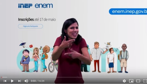 O Instituto Nacional de Estudos e Pesquisas Educacionais Anísio Teixeira (Inep) lançou, na segunda-feira, um vídeo na internet que ensina os candidatos ao Exame Nacional do Ensino Médio (Enem) a fazer a inscrição, passo a passo, em Língua Brasileira de Sinais (Libras). O vídeo traz o todas as etapas do novo sistema de inscrição.