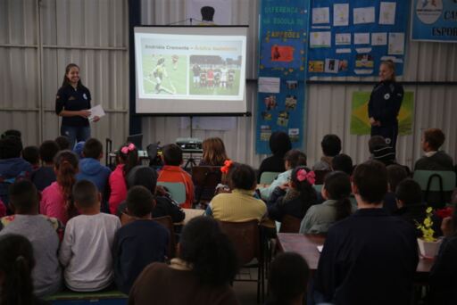 Uma das atividades ocorreu na última quinta-feira, quando as árbitras de futebol Andressa Hartmann, 26 anos, e Andriéle Cremonte Oliveira, 24, falaram com os alunos sobre o preconceito e os desafios enfrentados por elas no esporte.